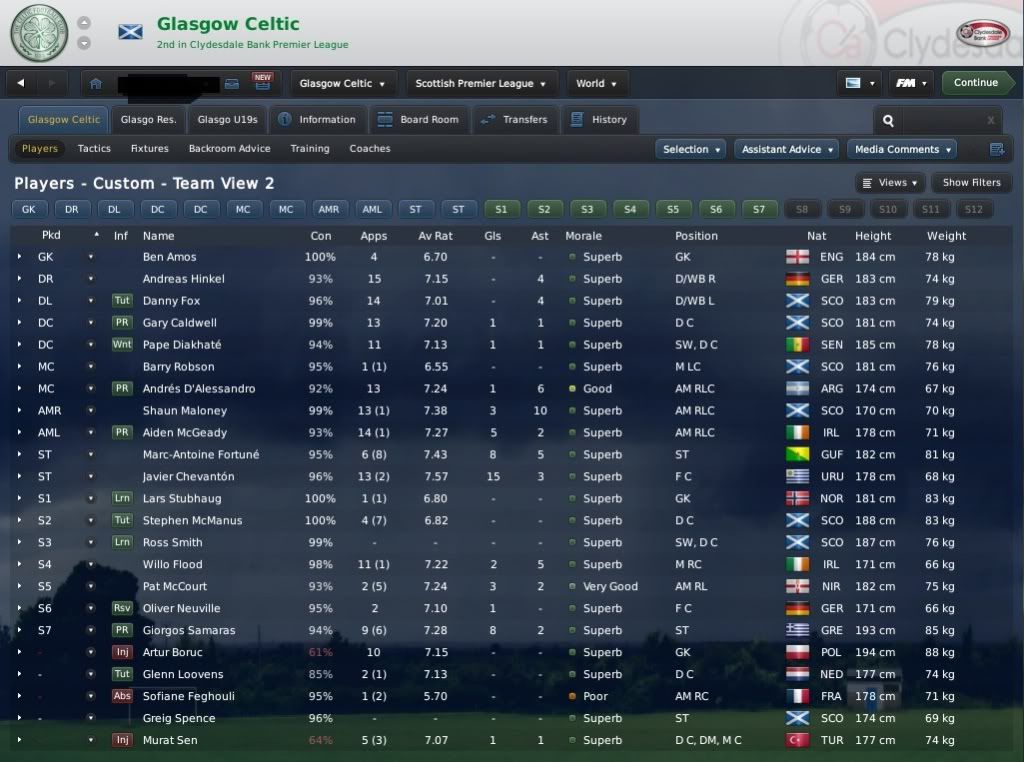 Finanziell bin ich in neue Dimensionen vorgestoßen. Diese Saison hatte ich zum ersten Mal ein Budget das an die 30Mio€ kratzte (45Mio€ Gehaltskosten). Das wurde fast komplett reinvestiert und mit Marko Marin ein neuer Rekordtransfer verzeichnet (23Mio€). Stolz bin ich mittlerweile auf meinen Deutschen Block, der fast nur aus Nationalspielern besteht.