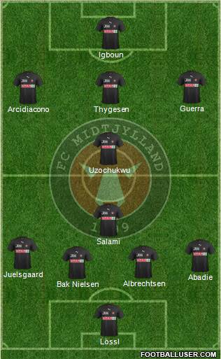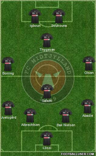 Midtjylland: Lössl - Juelsgaard, Albrechtsen, Sviatchenko, Abadie - Salami - Borring, Poulsen - Thygesen - M. Nielsen, SoukounaWechsel:Olsen für Borring (66.)Statistik: