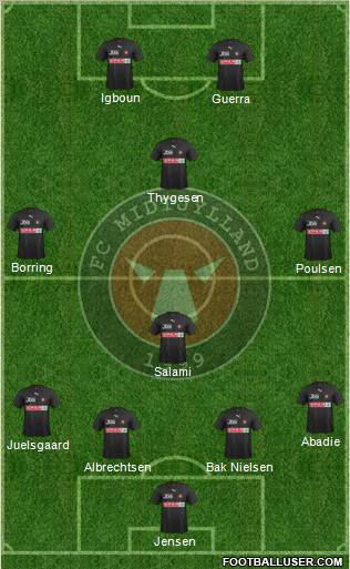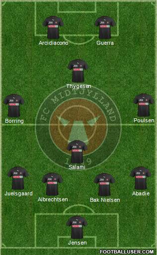 05.12.2010 - Herning - 19. Spieltag der SAS - Liga (gegen Bröndby IF)Aufstellungen:Midtjylland: Jensen - Juelsgaard, Albrechtsen, Sviatchenko, Abadie - Salami - Borring, Olsen - Poulsen - M. Nielsen, SoukounaBröndby: Dida - Frederiksen, von Schlebrügge, Goodson, Nilsson - Wass, Larsen - Kristiansen, Jensen, Sörensen - JallowWechsel:Fagerberg für M. Nielsen (45.)Statistik:Torschüsse: 12 - 17