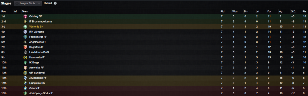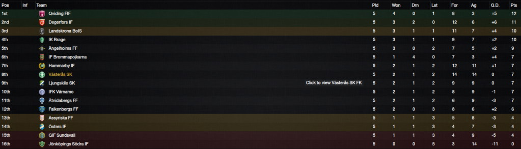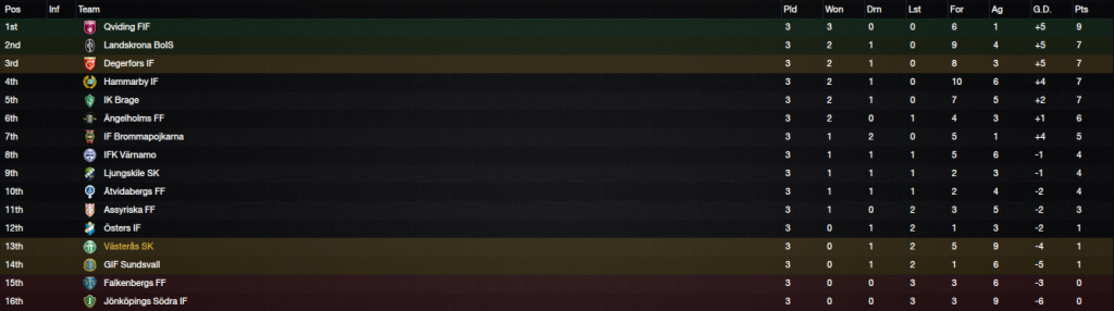 Taktisch war die Mannschaft in der Defensive nicht ordentlich geschult, eine Sache die ich mir vorwerfen musste und die in der kommende Woche nachgeholt werden sollte. Degerfors hatte aus den ersten zwei Partien 4 Punkte geholt, also stand uns ein weiteres schweres Spiel bevor.