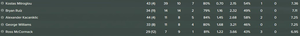 Mitroglou die beste Durchschnittsbewertung hat.