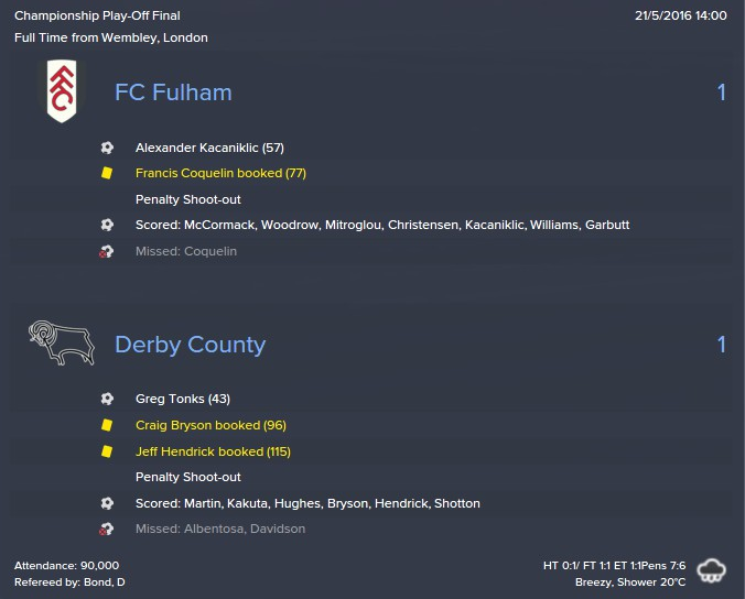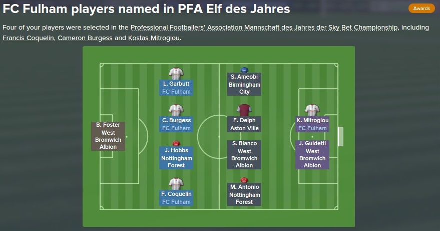 Saisonrückblick 2015/2016Der FC Fulham kann zurückblicken und das nun mit Freude. Nach zwei Jahren in den tiefen der Championship hat sich eine sehr junge, aber reife Mannschaft den Aufstieg verdient und darf wieder im Oberhaus mitkicken. Man hat auf diesem Weg namhafte Mannschaften wie Aston Villa, den FC Sunderland oder Derby County hinter sich gelassen. Auf