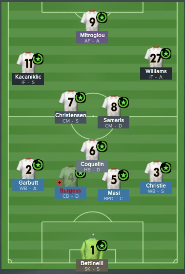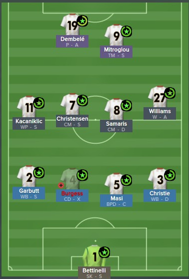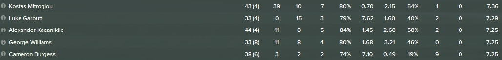 Cameron Burgess: In der zweiten Mannschaft fand ich dieses Talent vor und zog ihn sofort nach oben. Ein Glückgriff. Der Australier entwickelte sich stark, zog an Dan Burn vorbei und wurde zu meinem besten Mann in der Abwehr. Seine gute Strafraumverteidigung wird ergänzt durch ein sehr sauberes Passspiel. Das kleine Schnelligkeitsdefizit macht er mit bemerkenswerter Antizipation aus. Durch seine geringe natürliche Aggression ist er der ideale Spieler um einen gegnerischen Stürmer aus dem Spiel zu nehmen. Er bedrängt sauber ohne dabei unnötige gelbe Karten zu sehen.