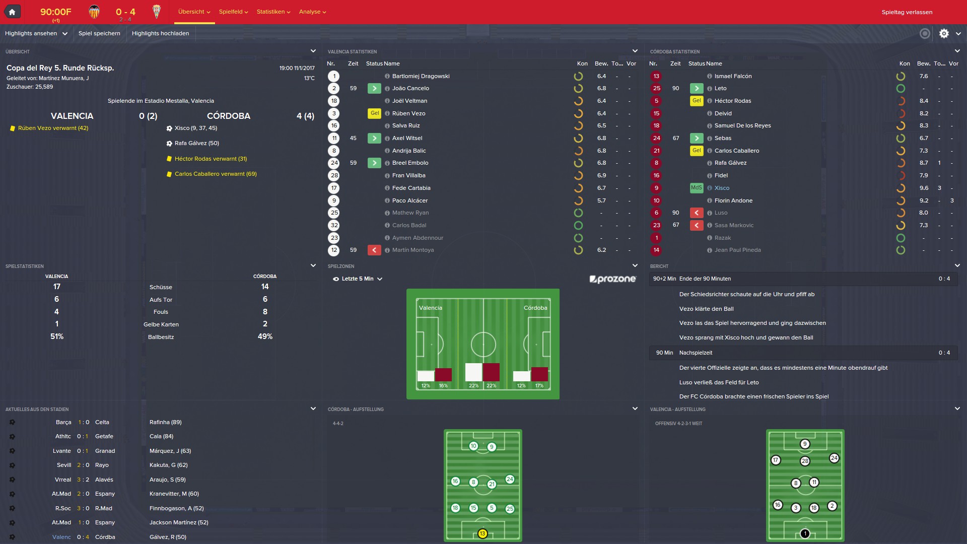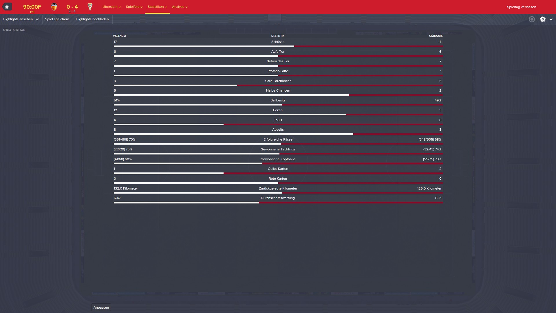 Es ist dann bei 6 zu 6 Torschüssen ein 0 zu 4...Cordoba gewinnt danach wieder monatelang kein Pflichtspiel.
