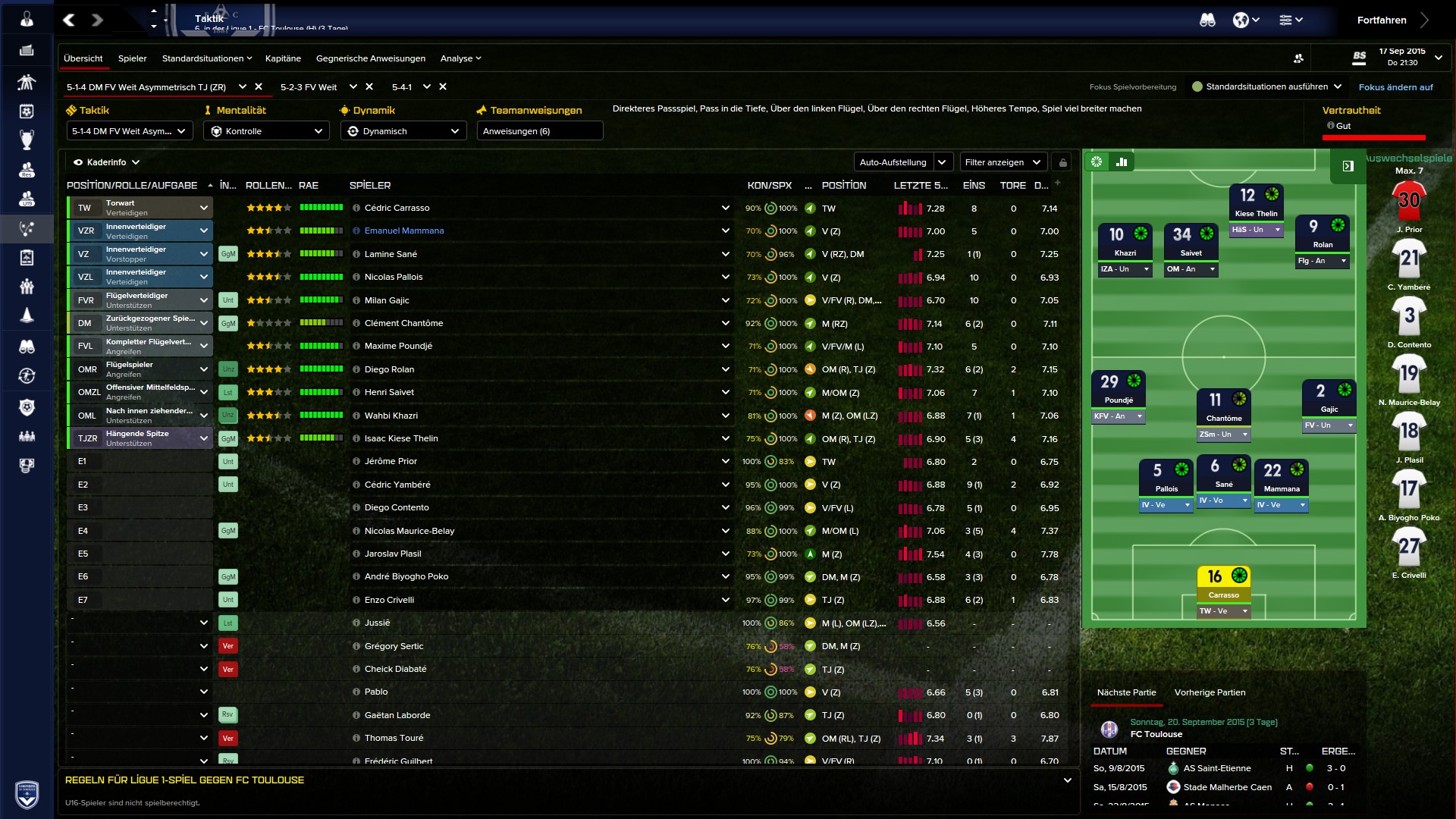 Und im Spiel danach gewinne ich auswärts beim AS Rom (4.) mit 2:0, ich buche Norrköping mal als Totalausfall ab.