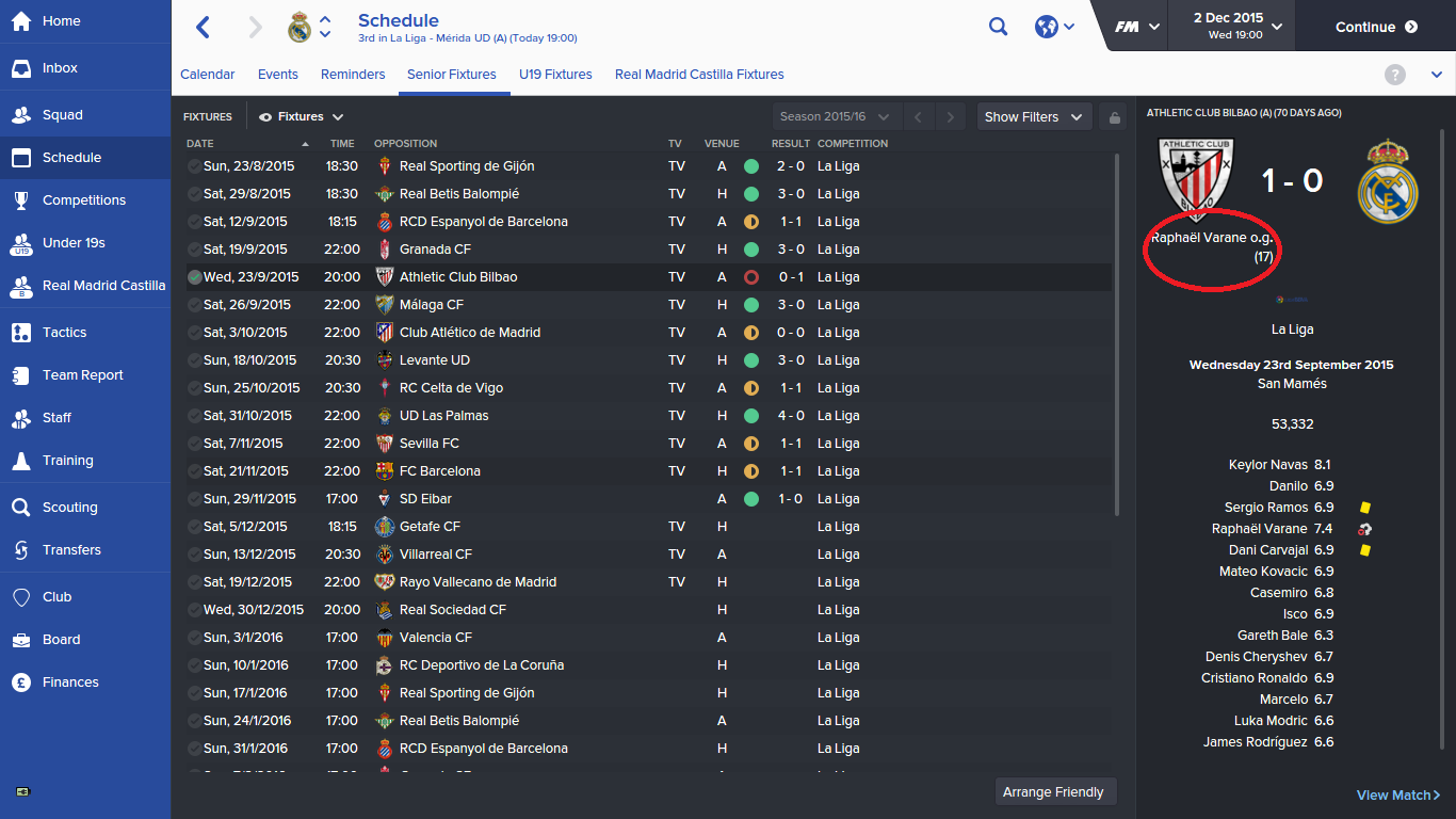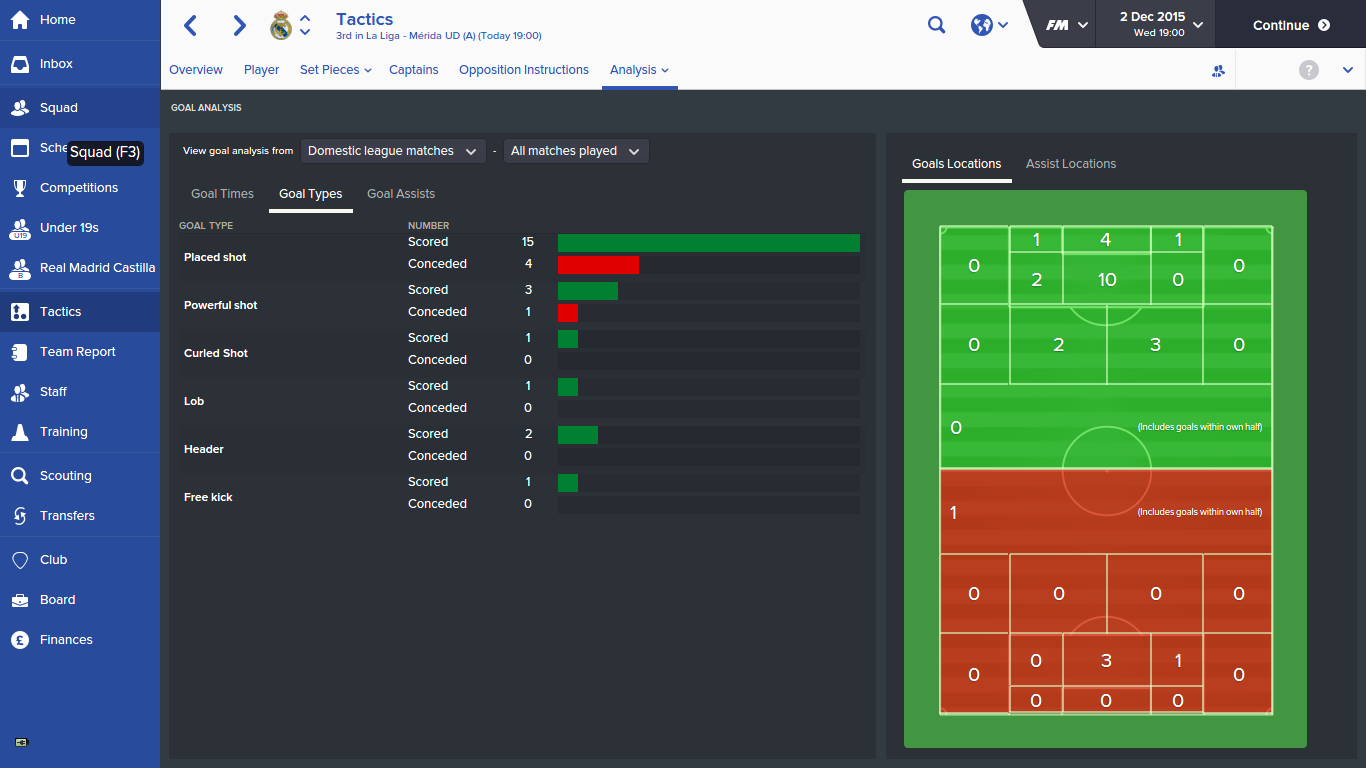 Ferner schreibe ich nicht grundlos, dass Tools verbuggt sind. Z.B. zeigt mir das Spiel unter "Analyse" an, ich hätte in den letzten 15 Ligaspielen 18 Tore erzielt. Dabei waren es alleine in den 14 Partien dieser Hinrunde 25 Tore.