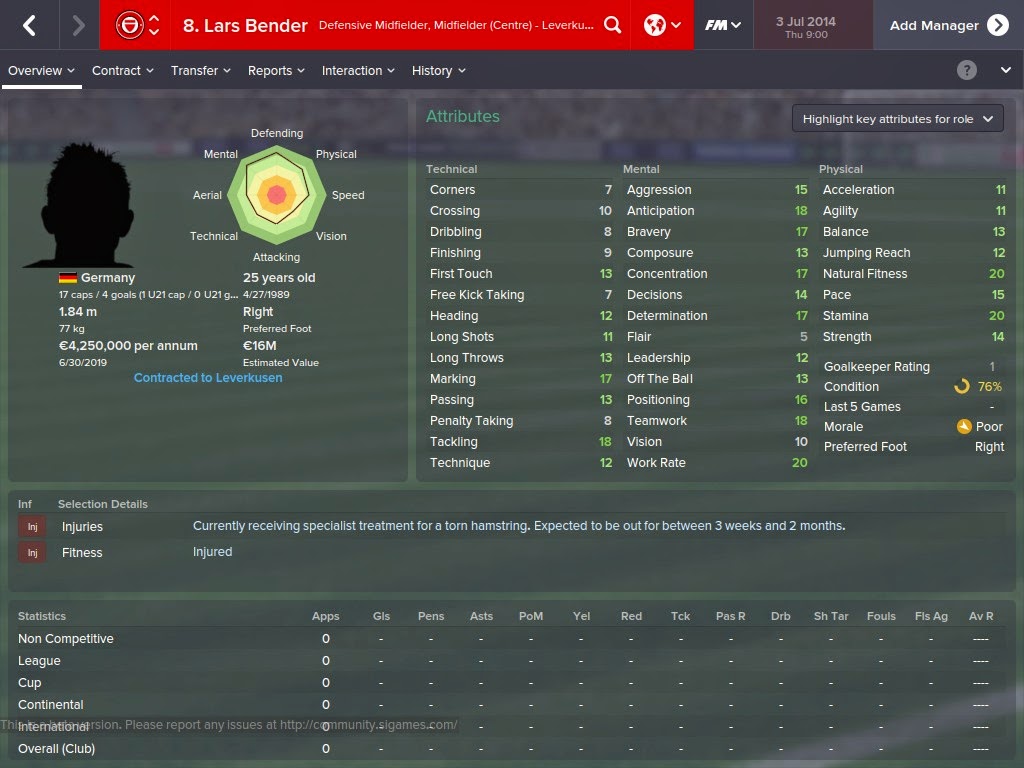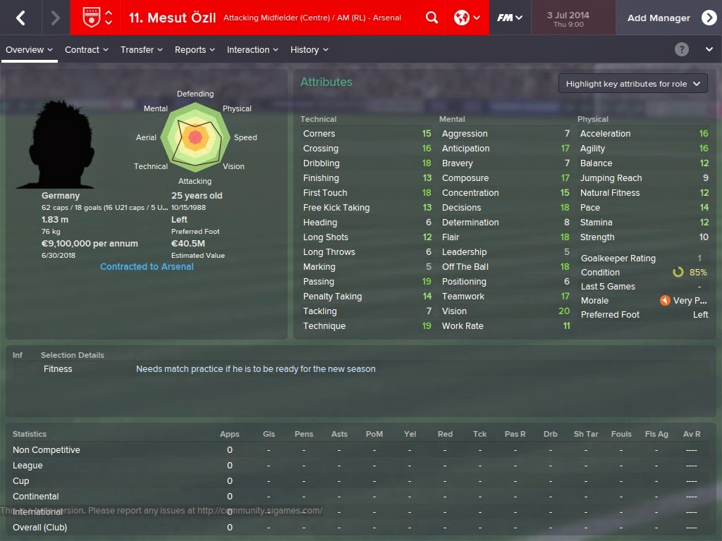 Ich meine nicht "falsch" lesen. Ich meine nur, es scheint mir unterschätzt. Insofern, als dass man direkt aus seiner Form erkennt, was für einen Spielertypen man sich prinzipiell gerade anschaut. Außerdem natürlich: Je größer die Fläche, desto "besser" der Spieler. Kann man alles erkennen, ganz ohne eine einzige Zahl. Das ist eigentlich gar nicht mal schlecht designt, denn Gegensätze liegen sich Gegenüber. Abwehr<->Angriff. Physis <->Technik. Hätte ich mit Hinblick auf den deutschen Markt definitiv ins Tutorial integriert (vielleicht ist das ja der Fall). Andererseits scheinen SI das selbst zu unterschätzen. Ich hatte mich z.B. immer gewundert, warum man das zum Beispiel im FM Touch (ausgerechnet) erst manuell im Profil einblenden musste... sonst wird es nicht angezeigt!