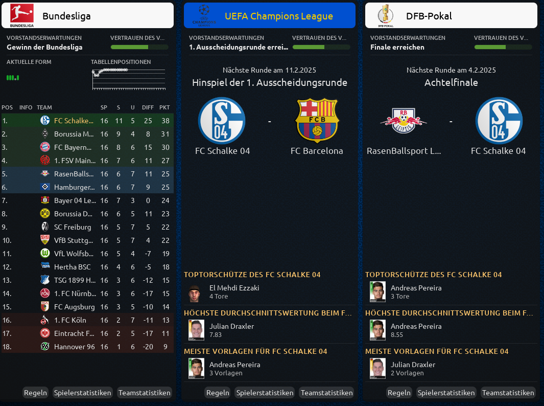 Im Februar werden wohl die nächsten Vertragsverlängerungen folgen... Mal schauen, wieviel Zeit ich dafür habe. Immerhin stehen schwierige Spiele vor der Tür! (CL, DFB-Pokal)