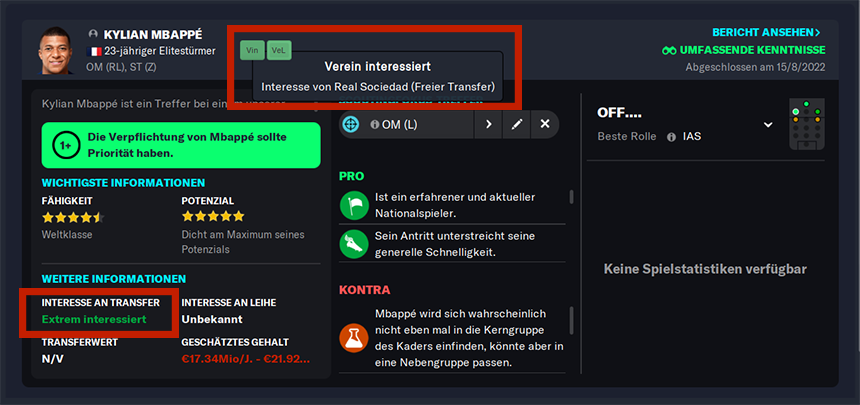 Fazit für mich, abgesehen von der Vereinswahl: Wenn ich den FM nochmals mit diesem File spielen würde, würde ich entweder erst nach der Transferperiode übernehmen oder mir bestimmte Kaderregeln auferlegen, um das Spiel interessanter zu gestalten.