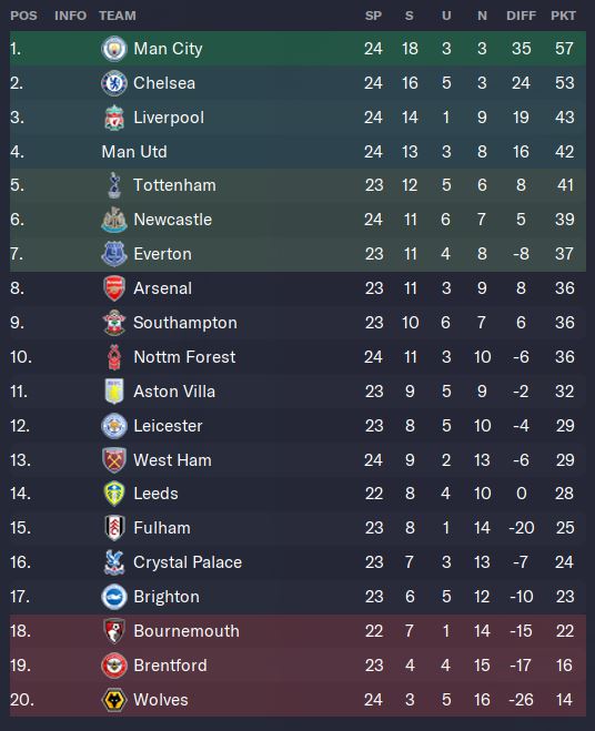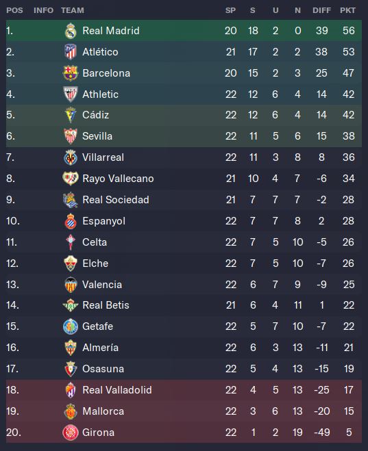 Hier mal die aktuellen Tabellen aus Deutschland, Spanien und England: