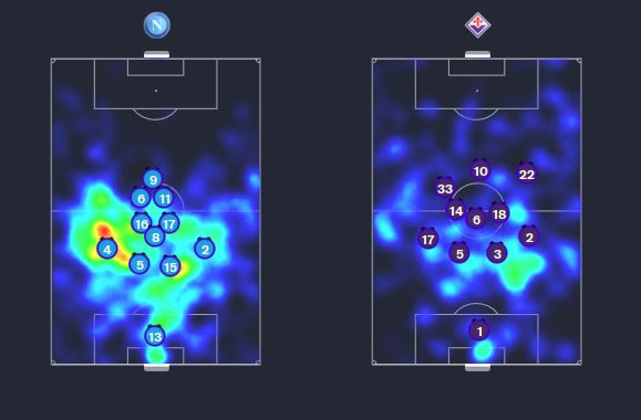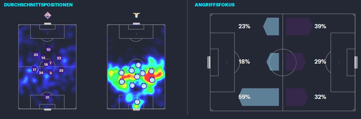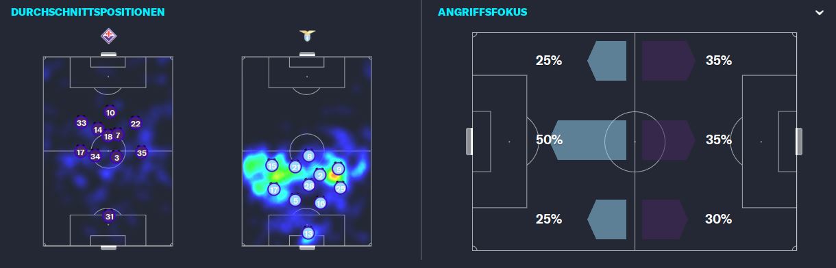 Obwohl Fiorentina den Ballbesitz nicht dominierte, setzte das Team erfolgreich die Abseitsfalle ein, wodurch der Gegner mehrmals ins Abseits lief.
