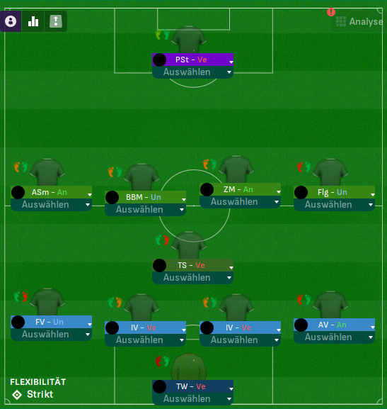 • Der Flg auf der rechten Seite soll Flanken für meinen Stürmer schlagen und die nötige Breite schaffen