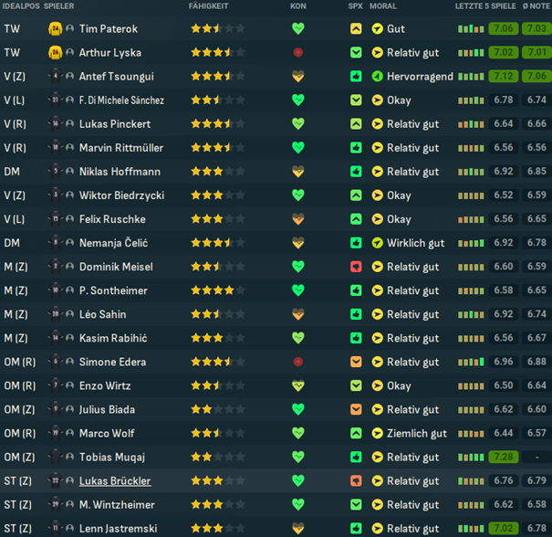 Bisher habe ich mir nur den Vergleichsbildschirm und meine Kaderübersicht angeguckt, ohne die Spieler im Detail zu analysieren. Meine Erkenntnisse bisher: