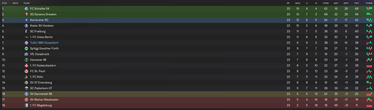 Hierfür blicke ich in die – schaut man nur die Punktausbeute - gar nicht so erfolgreiche Phase von Dezember bis jetzt, also Ende Februar. Hier eignen sich natürlich vor allem die beiden deutlichen Siege (4:1 gegen Köln & 3:0 gegen Kaiserslautern) oder aber das überraschende Unentschieden (1:1) gegen Dresden zum Monatsende.
