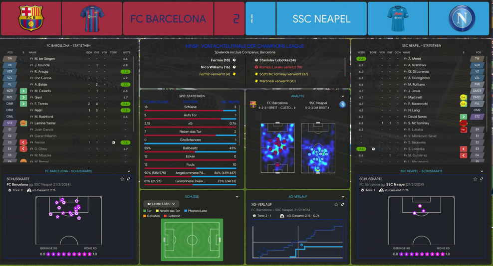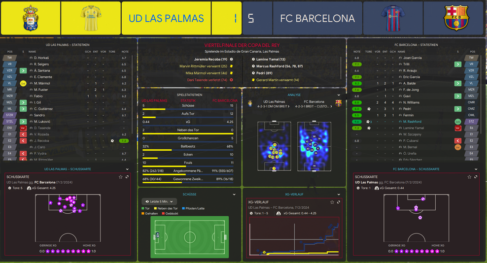 Die Katalanen dominierten Ball und Raum (55 % Ballbesitz, xG 1.82),