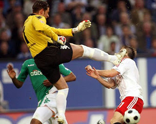 Ich schätze er zieht sein rosa Torwarttrikot aus der Saison 05/06 an. Tim "the Model" Wiese könnte ich mir vorstellen....