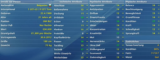 Jason Culina 29 Jahre PSV Eindhoven Stärken: hoher Einsatzwille, große Kreativität, technisch top und Standards, Kondition ebenfalls gut Schwächen: keine eklatanten (er ist für mich einer der Besten)