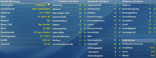 Colin Ciopraga 21 Jahre AD Ceuta Stärken: Kommunikation, Abwurf, Fausten Schwächen: Reflexe (Gott sind die schlecht!), Eins gegen Eins, Abschlag
