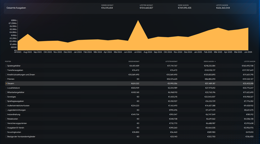Kapitel 31 – Geld, Glory & Gesundung: Die Barça-Finanzen 2024/25 1. Gesamtbild – Ein Verein, der wieder atmet Barcelonas Bücher erzählen in dieser Saison eine klare Geschichte: Sportlicher Erfolg bringt den Club finanziell wieder in ruhigeres Fahrwasser. Einnahmen gesamt: ca. €907 Mio. – deutlich mehr als im Vorjahr. Ausgaben gesamt: ca. €770 Mio. – hoch, aber durch Mehreinnahmen gut abgefedert. Tendenz: Operativ arbeitet der Verein wieder mit solidem Plus, ohne auf kurzfristige Notverkäufe angewiesen zu sein. Die Kombination aus Champions-League-Läufen, Klub-WM, volleren Stadien und einem modernisierten Kader zahlt sich aus – sportlich wie wirtschaftlich. 2. Einnahmen – Barça ist wieder Cashcow ![]() Haupttreiber der Einnahmen: TV-Gelder: Rund €165 Mio. – mehr als doppelt so viel wie im Vorjahr. Die tiefen Läufe in Champions League und Klub-WM lassen die Medienrechte explodieren. Sponsorengelder: Etwa €296 Mio., leicht über dem Vorjahr. Dazu kommt ein verbesserter Vertrag für internationale Wettbewerbe. Preisgelder: Rund €125 Mio. – Pokalläufe, Liga-Topplatzierungen und internationale Titelrennen bringen fette Bonuszahlungen. Merchandising & Matchday: Über €100 Mio. an Fanartikel-Umsatz, dazu steigende Einnahmen an den Spieltagen. Trikot-Bestseller sind sinnbildlich für das sportliche Gesicht der Mannschaft: ![]() ![]() Olmo (12) Nico Williams (19) Hugo Duro (9) Fermín (16) Lewandowski (99) Die Stars, die auf dem Platz liefern, ziehen auch an der Kasse. 3. Ausgaben – Hohe Kosten, aber kontrollierter Rahmen ![]() Auf der Ausgabenseite bleibt Barça ein Schwergewicht: Spielergehälter: Mit über €200 Mio. weiterhin der größte Brocken. Prämien & Boni: Erfolgsabhängige Zahlungen steigen – aber genau das ist ein Luxusproblem, das ein Spitzenverein haben will. Steuern, Betrieb & Infrastruktur: Hoher, aber stabiler Fixkostenblock für Stadion, Mitarbeiter, Nachwuchs und Verbandsabgaben. Trotz der großen Zahl wirkt das Kostenprofil erstmals seit Jahren strukturiert statt panisch: Weniger kurzfristige Rettungsaktionen, mehr planbare Blöcke. 4. Gehaltsstruktur – Vom Chaos zum Konzept ![]() Der wohl wichtigste Hebel der letzten Jahre: die Lohnkurve. Die Übersicht zeigt klar: Gesamtgehalt 24/25: ca. €194 Mio. Prognose 25/26: ca. €181 Mio. Prognose 26/27: ca. €155 Mio. Prognose 27/28: ca. €127 Mio. Durch den Abschied von Topverdienern wie Ter Stegen und perspektivische Vertragsstrukturierungen gleitet die Gehaltsmasse jedes Jahr ein weiteres Stück nach unten, ohne das sportliche Niveau zu opfern. Die Balance stimmt: Leistungsträger wie Gavi, Pedri, Nico Williams, Olmo sind im oberen Segment, aber nicht jenseits der Schmerzgrenze. Junge Säulen wie Cubarsí, Lamine Yamal, Bernal, Fermín liegen (noch) deutlich darunter – ideal, um sportlichen und wirtschaftlichen Peak zusammenzuführen. Altstars wie Lewandowski laufen aus, was in naher Zukunft weitere Luft im Budget schafft. 5. Schulden & Kredite – Der Rucksack wird leichter ![]() Ganz verschwunden ist der Schatten der Vergangenheit nicht, aber er wird kleiner: Nettoverschuldung: ca. €340 Mio. Transfersalden: rund –€18 Mio. – der Verein hat eher Forderungen als Verbindlichkeiten aus Spielerkäufen. Mehrere Großkredite laufen weiter, aber: Ein erster Alt-Kredit ist demnächst komplett abbezahlt. Die restlichen Tilgungspläne sind langfristig gestreckt und passen besser zu den aktuellen Einnahmestufen. Kurz gesagt: Der Club ist noch nicht schuldenfrei, aber weit weg von der akuten Alarmstufe vergangener Jahre. Man arbeitet Schulden aus dem Erfolg heraus – nicht mehr aus der Not. 6. Fazit – Sportlicher Erfolg als Businessmodell Barcelonas finanzielle Situation nach dieser Saison lässt sich so zusammenfassen: Einnahmen auf Topniveau, vor allem durch TV-Gelder, Preisgelder und Merch. Ausgaben hoch, aber strukturiert, mit klar sinkender Gehaltskurve. Schuldenlast bleibt, ist aber kontrollierbar und wird Jahr für Jahr abgebaut. Kaderpolitik & Moneyball-Ansatz greifen: hohe sportliche Performance, aber ohne neue finanzielle Harakiri-Aktionen. Trainerkommentar: „Die Basis für alles, was auf dem Platz passiert, ist Stabilität im Hintergrund. Der Verein ist noch lange nicht am Ende dieses Weges, aber zum ersten Mal seit Jahren fühlt sich das Ganze wie ein Plan an – nicht wie eine Dauer-Notbremsung. Wenn die Mannschaft so weiter performt, können sportlicher Erfolg und finanzielle Gesundung Hand in Hand gehen.“ |